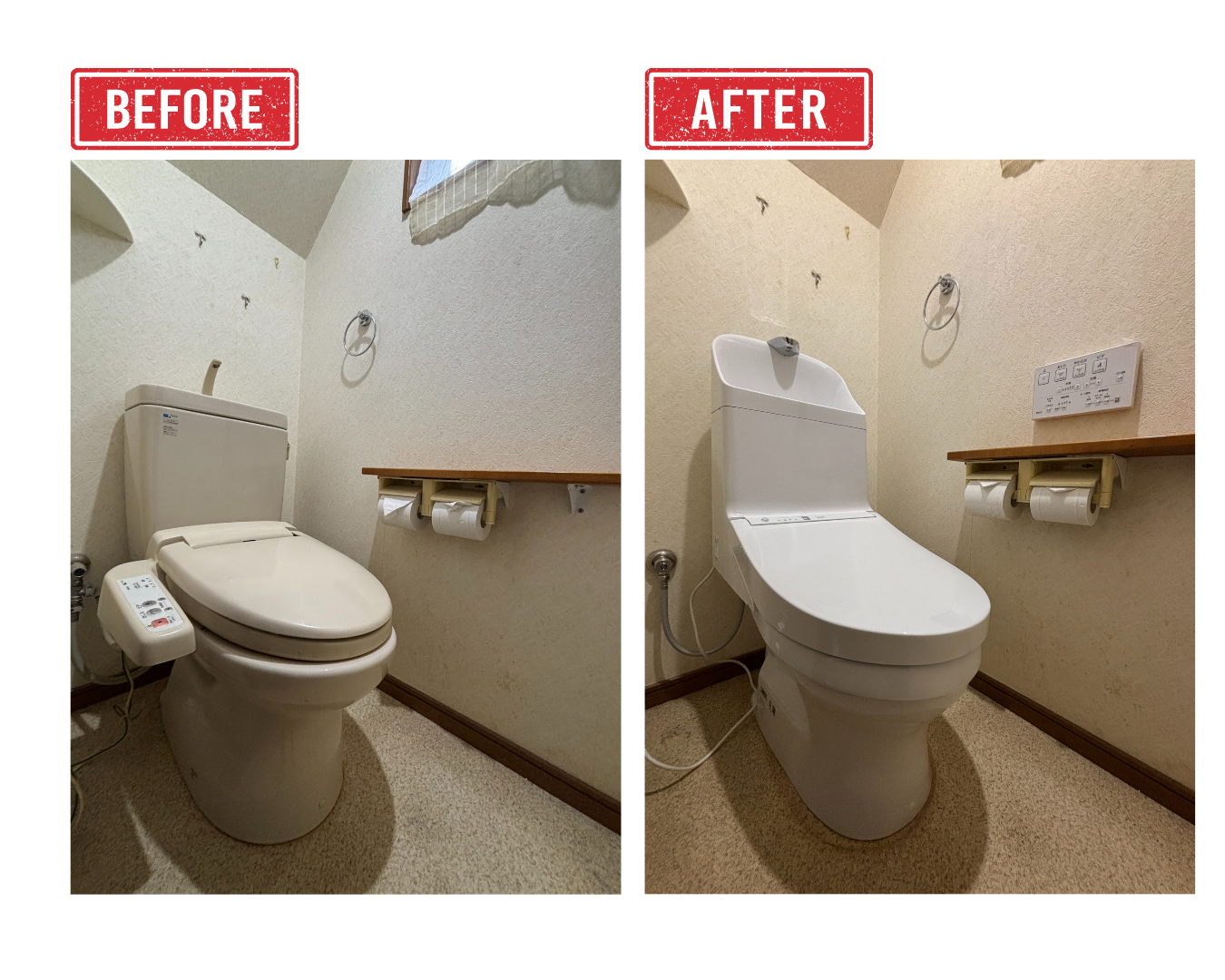 元のトイレはウォシュレットの操作パネルが便器の横に付いていて、出っ張っていたため、奥の床を拭き掃除するのに邪魔でしたが、壁付になりスッキリしました。